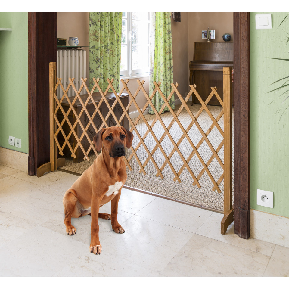 Fermez facilement l’accès à une pièce grâce à cette barrière accordéon en bois. D’une largeur maximale de 1,50 m, cette clôture s’adapte à votre intérieur : cadre de porte, escalier, baie vitrée… La barrière rétractable est à la fois pratique, mais également esthétique avec ses croisillons en bois, dégageant la vue sur l’extérieur. Ceci vous permet de garder un œil sur vos animaux.